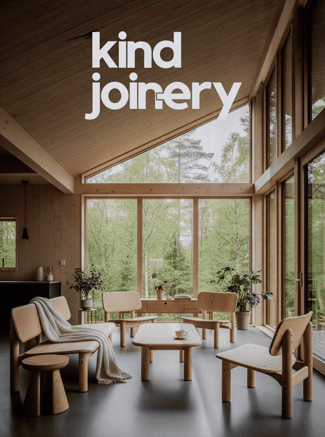 Création d'une identité visuelle pour la marque Kind Joinery, une compagnie fictive de meubles raffinés inspirés du design scandinave moderne. Le studio a conçu un logo et une direction artistique épurée qui mettent en valeur la simplicité, la fonctionnalité et l’élégance des pièces.